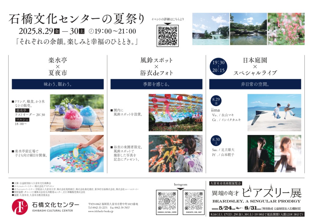 日本庭園スペシャルライブ、夜市(マルシェ&子ども向け縁日)、