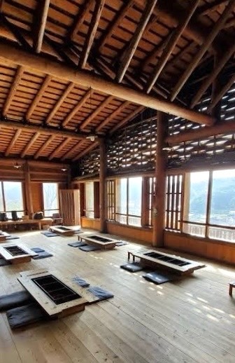 店内には心地よい座敷席のほか、四季折々の美しい景色を楽しめるテラス席も完備。春には桜、夏には新緑、秋には紅葉、冬には雪景色と、上陽町の自然を感じながら食事が楽しめます。