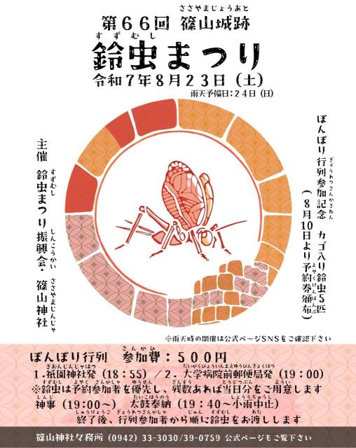 ※ぼんぼり行列参加予約券(鈴虫引換券付)は、8/10(日)から頒布(参加費500円)、準備数には限りがあります。